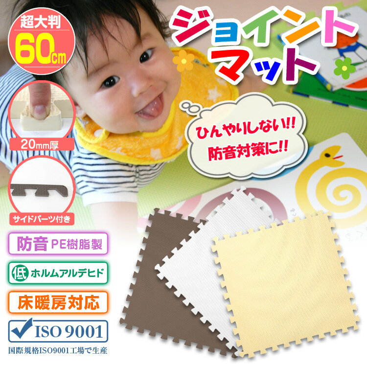 【4時間限定ポイント5倍(6/14 20:00〜23:59)】 ジョイントマット 大判 極厚 厚手 2cm 20mm 60cm 3畳 16枚 サイドパーツ付 床暖房対応 抗菌 ノンホル 単色 洗える PE ジョイント マット 赤ちゃん フロアマット プレイマット 防音 断熱