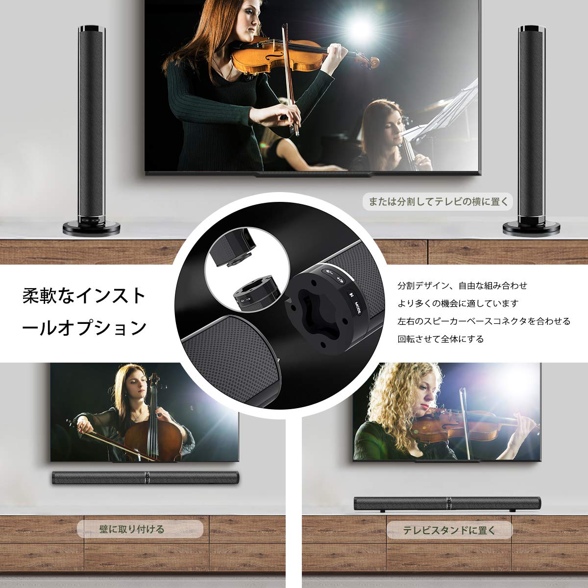 分割すると、サウンドバーは瞬間的に垂直方向のコンビネーションサウンドに変わります。
