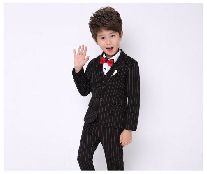 【予約販売・送料無料】ストライプ柄 子供スーツ 3点セット【ジャケット・ベスト・パンツ】子供 スーツ 男の子 キッズ フォーマル 子供フォーマル スーツ スリーピース ジュニア 七五三 発表会 結婚式 入園 卒業式 入学式 おしゃれ かわいい 90 100 110 120 130 140 150