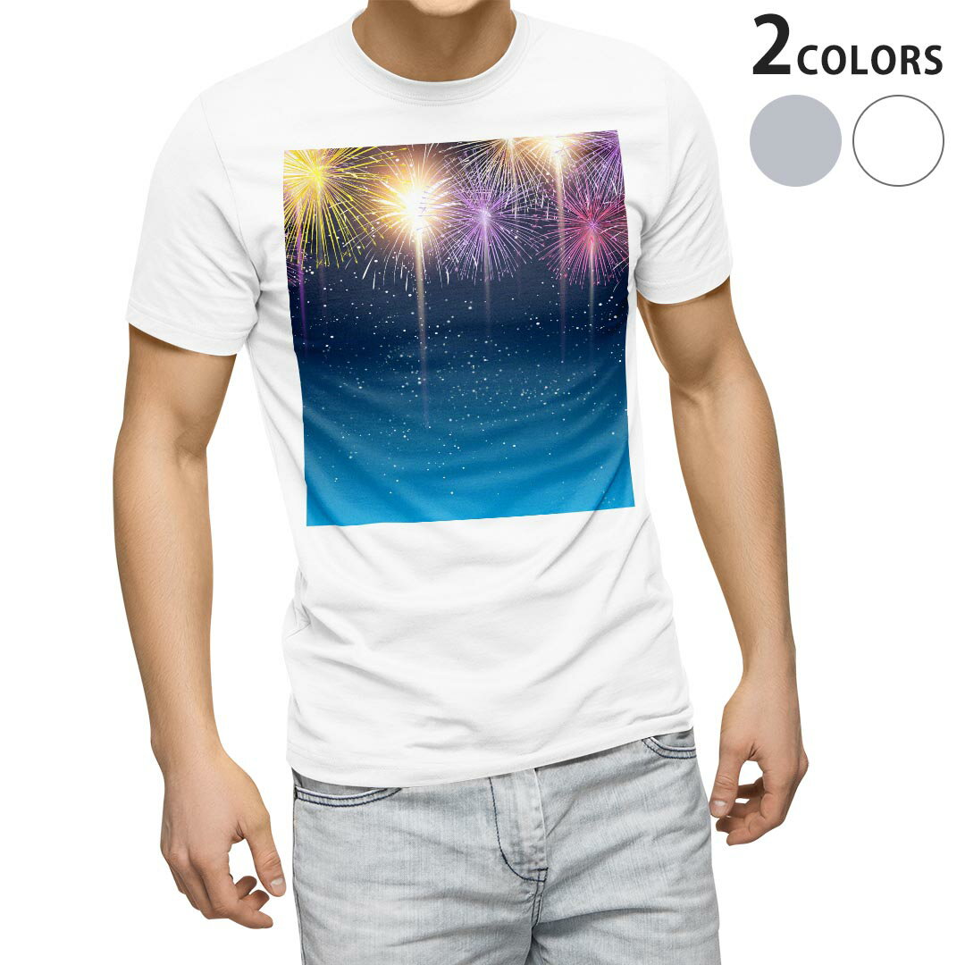 tシャツ メンズ 半袖 ホワイト グレー デザイン XS S M L XL 2XL Tシャツ ティーシャツ T shirt 013803 花火 カラフル
